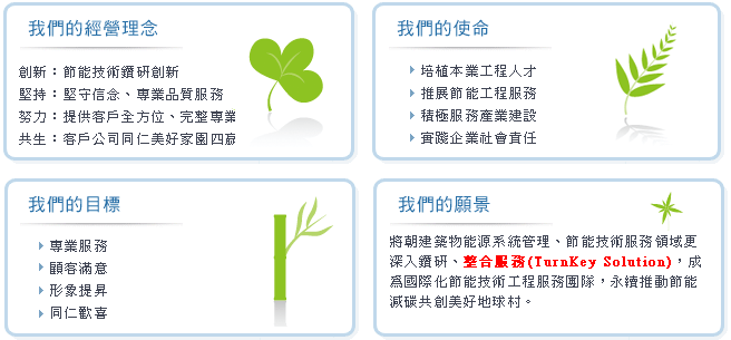 翔盟科技工程,一向以培植工程人才、推展節能工程、服務產業建設與實踐企業社會責任為目的,不斷創新並提昇工程技術,擴大技術服務領域,積極參與回饋社會之公益事務,邁向永續經營,期許屬於傳統工程技術的我們,在國內生根茁壯之餘,能成為國際化節能技術工程服務團隊。